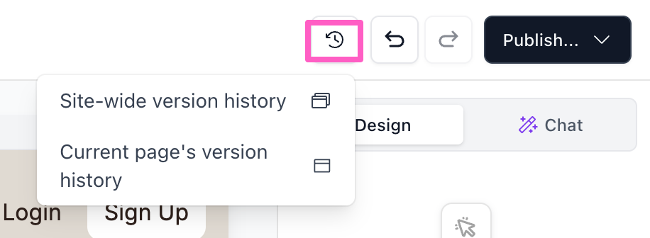 In this guide, you’ll learn how to access and restore version history for your entire site, individual pages, and global elements (navbar, footer, login modal, signup modal), and find answers to common questions at the end.