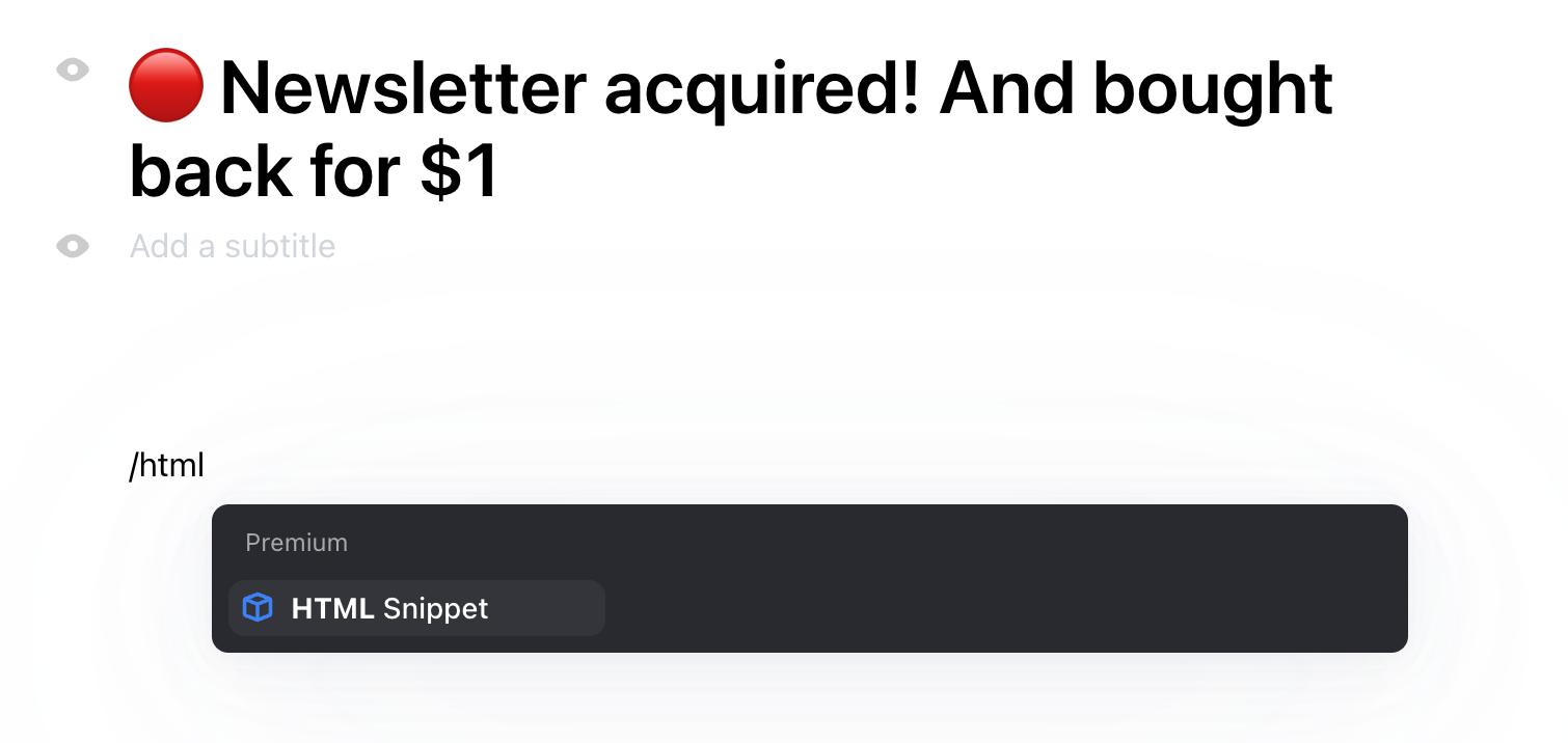 Add the HTML Snippet block. The Post Builder will open on the Compose page. Type /html on the canvas to insert a HTML Snippet block.